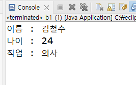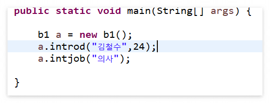 b2와 b3에서 만든 추상 메서드 introd와 intjob을 오버라이딩 하였다.