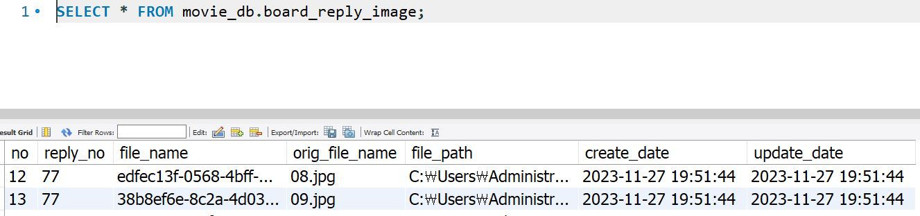 먼저 댓글 이미지를 저장할 DB의 테이블을 만들었다. 이미지를 집어넣으면 데이터를 저장하는 방식으로 구현했는데, 문제가 생겼다. 보통 댓글을 작성할 시, 댓글 고유 넘버가 지정되고, 그 고유 넘버를 추출해서 이미지 테이블에서 fk로 저장하는 방식을 하는데, reply_no가 바로 댓글을 고유넘버 fk이다. 댓글을 작성 시 그 고유 넘버를 추출하는 방법을 저번에 배웠었으나 까맣게 잊고 있었다. 그래서 내가 그동한 포스팅한 곳에서 그냥 넘어갔던 SELECT LAST_INSERT_ID() 쿼리를 발견했다.