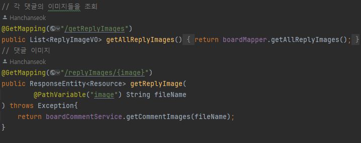 그래서 조회 시, 이미지 테이블의 replyNo 컬럼 값과 맞는 댓글을 불러와서 그 안에 이미지들을 집어넣게 하였다.