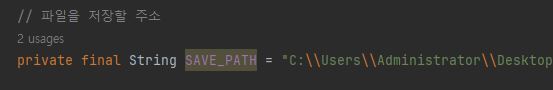 먼저 컨트롤러에서 해당 파일을 저장할 주소를 문자열로 집어 넣는다.