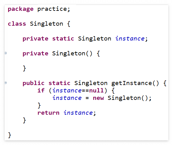 getInstance 메서드를 이용하여 인스턴스를 받을 수 있으며, if문을 통해 인스턴스가 없을 경우