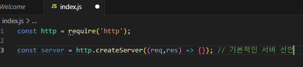 createServer는 server 객체를 생성하고 발생한 이벤트를 전달하는 역할을 한다.