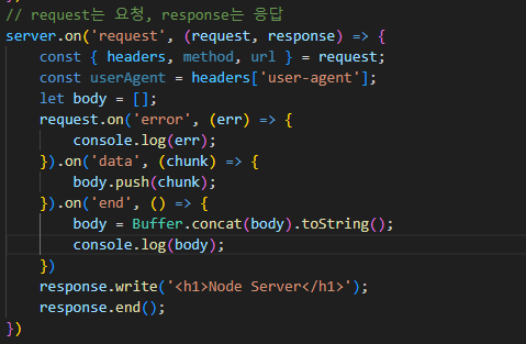 post나 put의 request에서 stream으로 전달되는 data와 end를 이용하면 body를 읽어 올 수 있다.