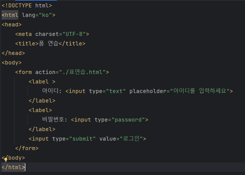 action 속성을 이용하여 로그인 후 이동할 페이지를 선택한다. 그리고 폼 요소에 이름을 붙이기 위해 라벨 속성을 이용