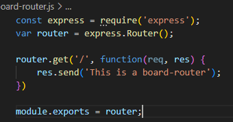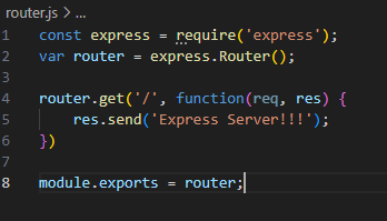 express를 불러와서 라우터를 정의한다. 그리고 module.exports로 다른 js 파일에서 불러올 수 있게 한다.