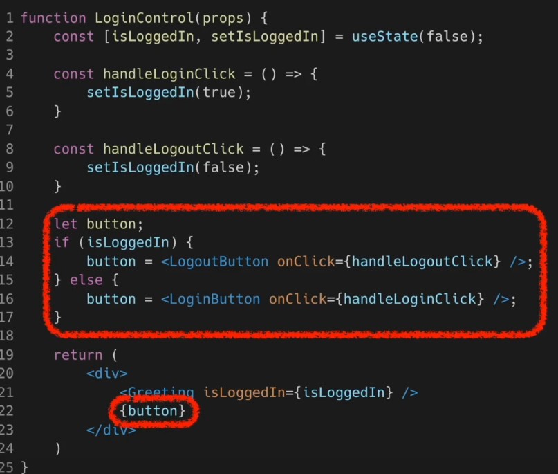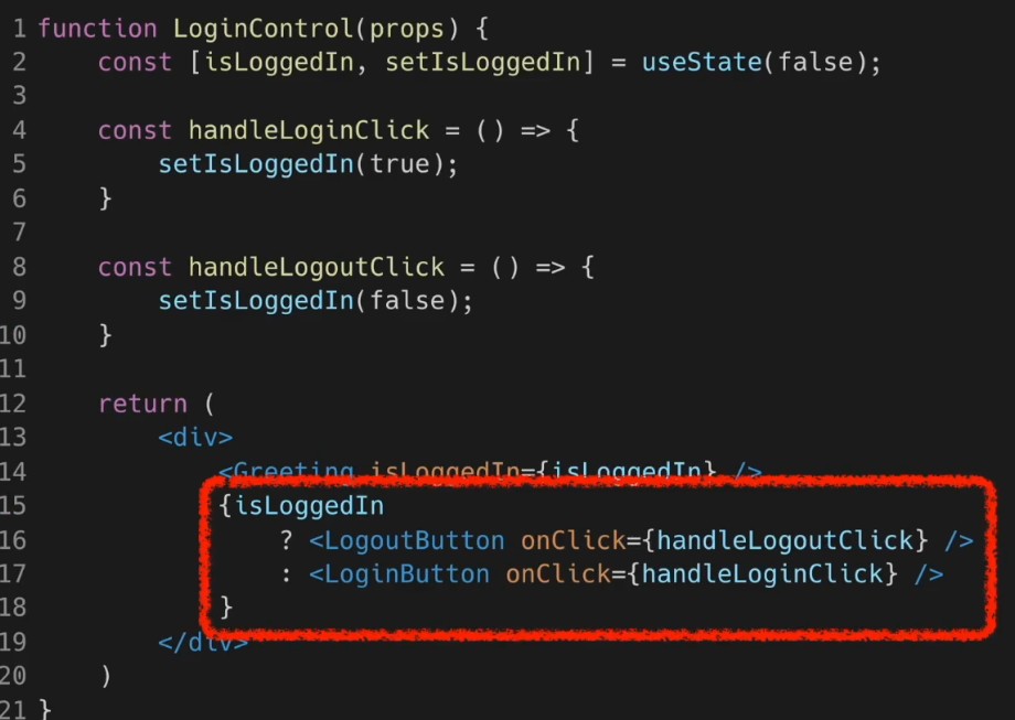 - 조건에 따라 각기 다른 Element를 렌더링 하고 싶을 때 사용