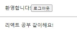 로그인 버튼을 누르면 환영 메세지가 뜨고, 로그아웃 버튼을 반환한다. 로그아웃 버튼을 누르면 원래대로 돌아가게 된다.