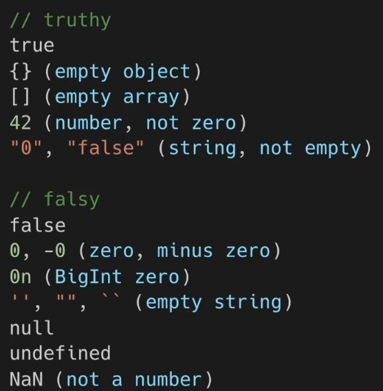- false && expression 첫번째 조건문이 false면 두번째 expression 문은 굳이 평가하지 않음