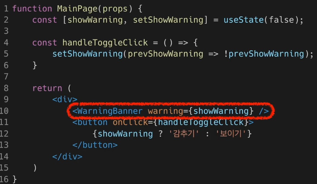 - 예) Ture이면 버튼을 보여주고 False이면 버튼을 가린다.