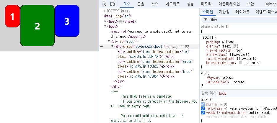 이러면 해당 엘리먼트 태그에 css 속성이 적용된 형태의 리액트 컴포넌트가 만들어진다.