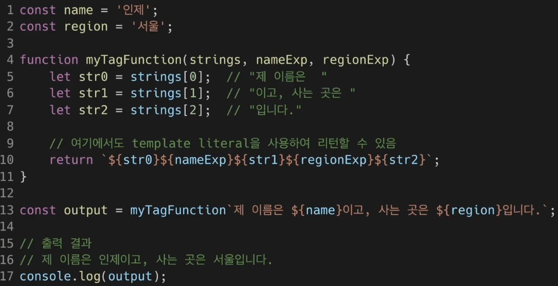 - template literal : 리터럴을 템플릿 형태로 사용하는 자바스크립트 문법, 역따옴표 백틱을 사용