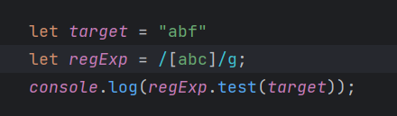 []에 원하는 문자를 넣어, 표현식에 부합하는지 확인한다. "abc"를 넣었을 때, a 혹은 b 혹은 c가 포함 될 경우