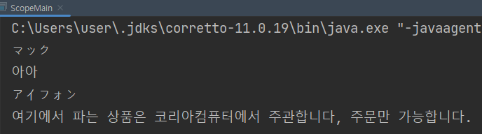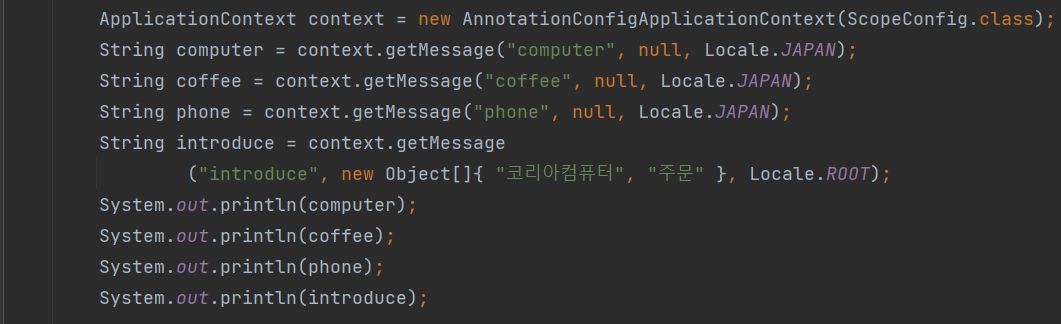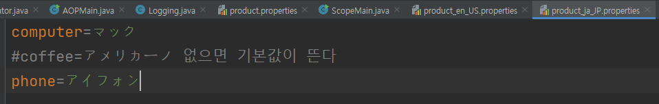 일본어의 커피 부분은 주석 처리가 되었기 때문에 기본값이 출력된다.