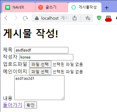 게시물을 작성하는 페이지를 만들고, 그 페이지에서 입력한 값들을 DB와 연동하여 전달받은 내용으로 게시물을 추가하도록 하였다.
