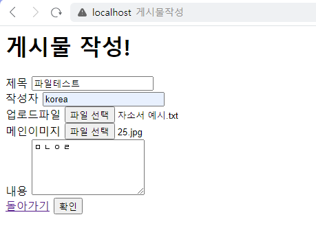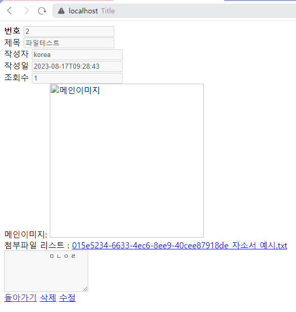 경로 설정을 제대로 한 후, 게시물을 다시 올려봤다. 해당 경로에 이미지가 저장이 되어 있었고, 역시 이미지와 첨부파일이 제대로 올려져 있다.