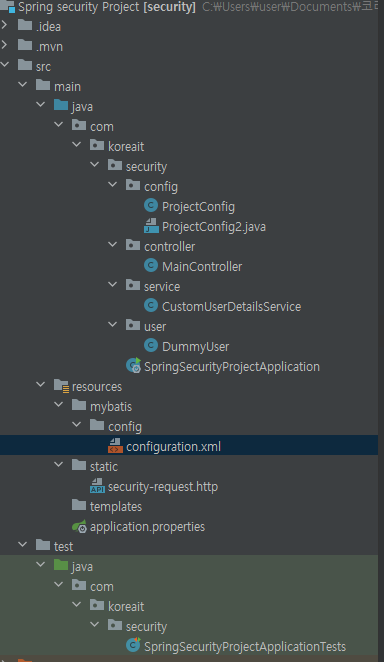 두번째로는 WebSecurityConfigureerAdapter를 상속하여 configure 메소드를 재정의하는 방식이 있다.