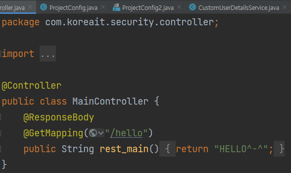 먼저 MainController에 실행하면 불러올 값을 정의함