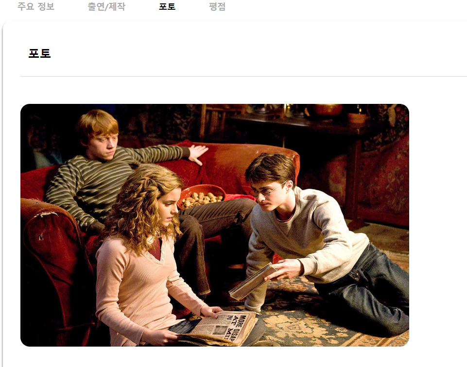 그 결과 포토 부분에 해당 영화의 이미지들이 뜨게 된다.