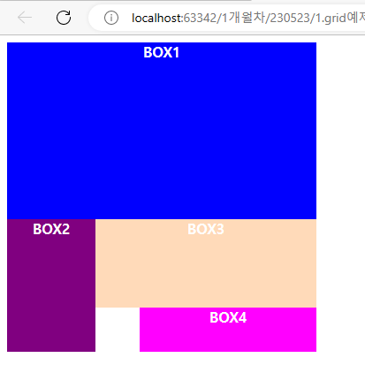 그리고 CSS로 하늘색 컨테이너 안에 빨간 상자 4개를 만든다.