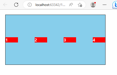 justify-content를 space-between으로 지정한 모습이다. 양 끝 요소를 딱 붙이고, 나머지는 요소들의 여백을 동일하게 둔다.