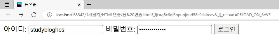 그리고 비밀번호는 password 타입을 이용하여 패스워드를 입력할 시 "*****" 이런식으로 입력되게 하였다.