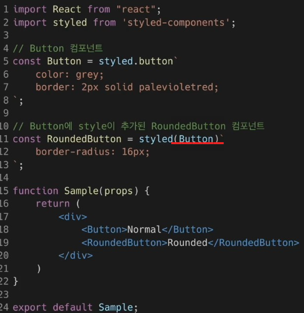 button이라는 변수에 컴포넌트를 집어넣어서 리턴하는 방식