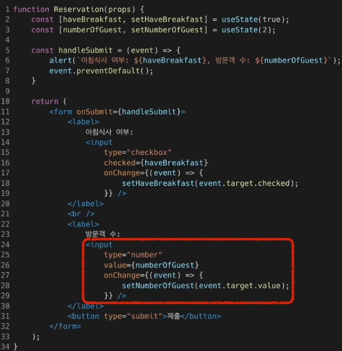 위의 Calculator 컴포넌트에서 온도를 입력 받는 부분을 추출하여 별도의 컴포넌트로 만들었다. 추가적으로 props로 단위를 나타내는 scale을 추가하여 온도의 단위를 썹시, 화씨로 나타내도록 함