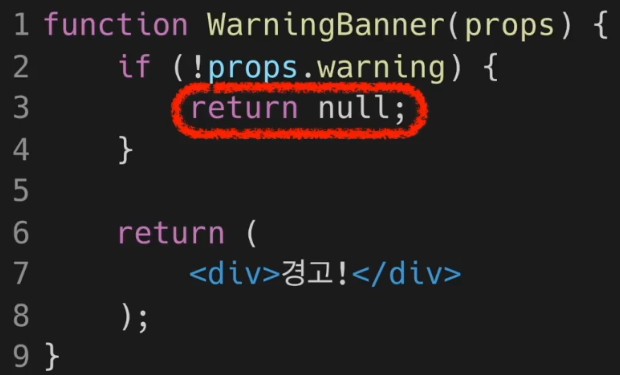 - null을 리턴하면 렌더링 되지 않음