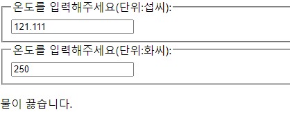 섭씨 온도에 99를 입력하자 화씨 온도 부분에서 변환된 온도가 나타나게 된다.섭씨 110도에서 물이 끓는다.마찬가지로 화씨에서 온도를 입력하면 섭씨에서 변환된 온도값을 나타낸다.