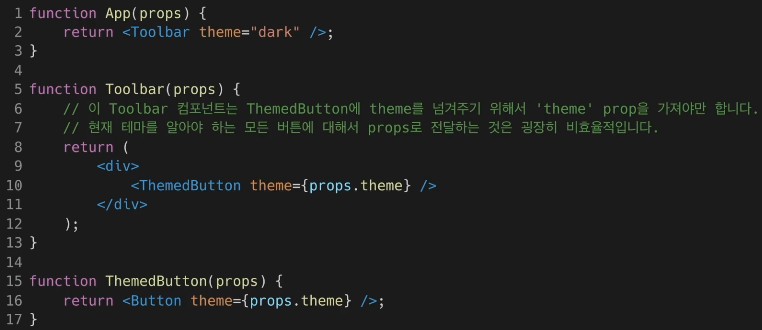 - 리액트로 개발시, 하나의 데이터를 여러대의 컴포넌트에서 표현해야 할 때가 있음. - 이럴 경우 데이터를 각각 보관하는 게 아니라, 가장 가까운 공통된 부모 컴포넌트의 state를 공유해서 사용함 - State에 있는 데이터를 여러개의 하위 컴포넌트에서 공통적으로 사용하는 경우