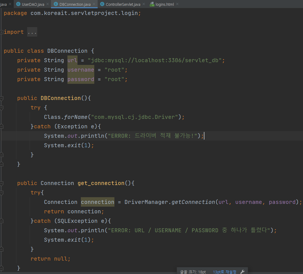 JAVA와 DB를 연결하는 DBConnection 클래스를 만든다.