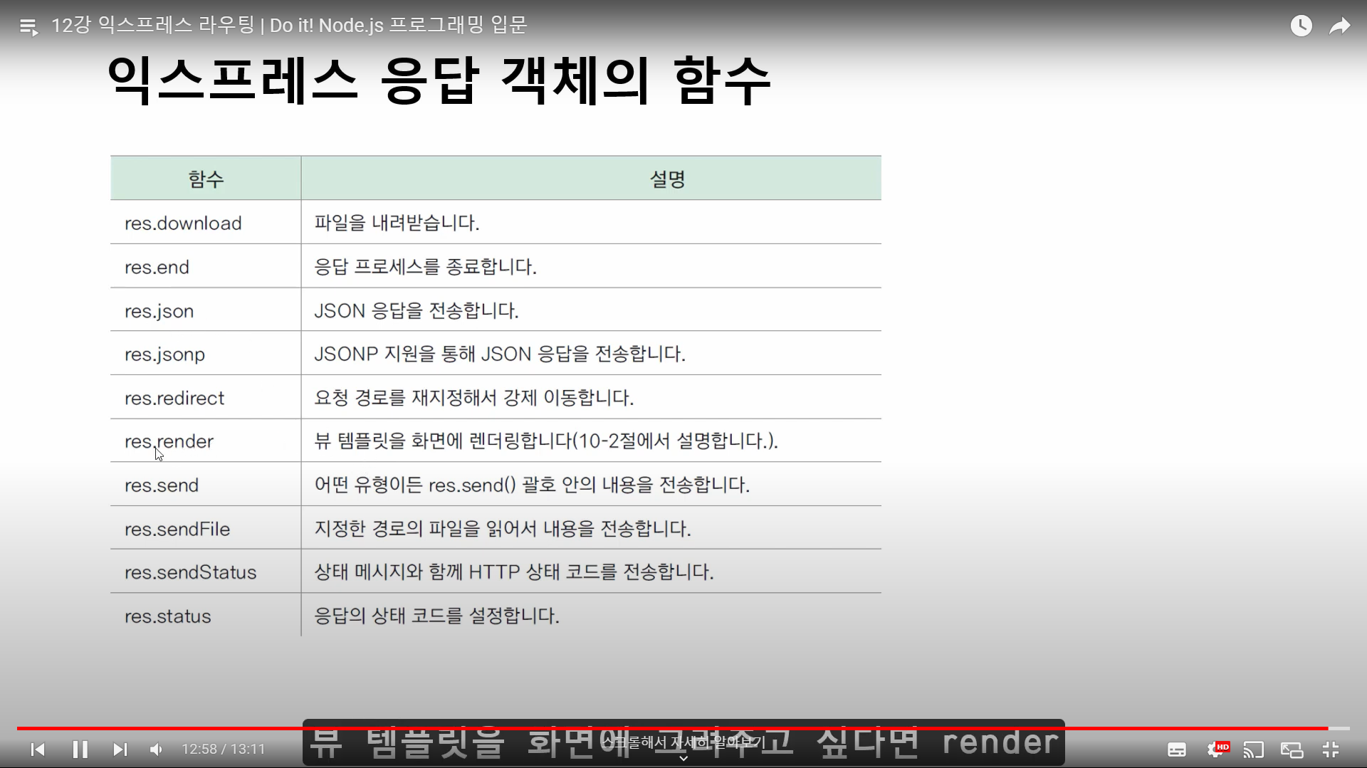 | [Node.js] express 요청 객체, 응답 객체의 속성과 함수 (0) | 2024.03.26 |