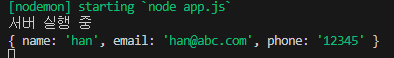 다시 post를 실행해보면 콘솔에 내가 요청한 바디값의 내용이 출력된다.