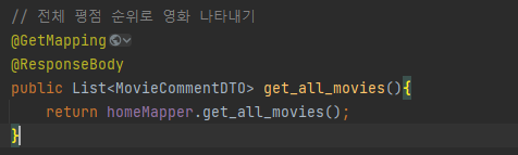 컨트롤러에 가서 전체 평점 순위로 영화 나타내는 메소드 호출.
