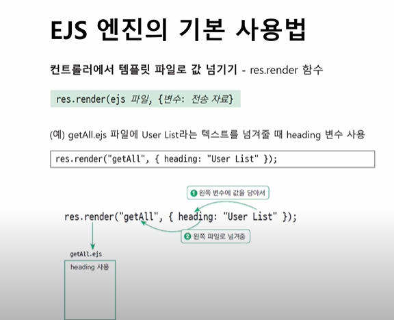 컨트롤러에 가서 get 함수 안에 화면에 보여주고 싶은 ejs 파일을 res.render() 함수를 이용하여 설정한다.