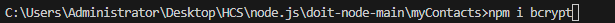 bcrypt 방식으로 비밀번호를 암호화 할 것이기 때문에 npm i bcrypt로 설치한다.