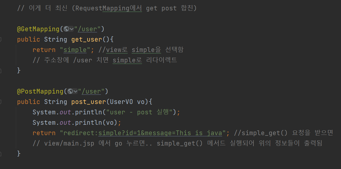 views/main.jsp 경로로 가서 전송 버튼을 누르면 다음과 같이 출력된다.