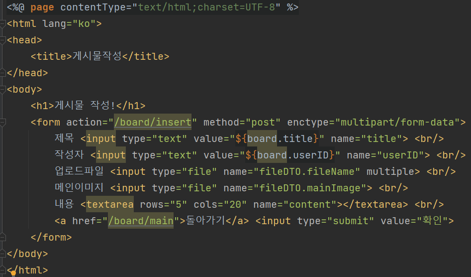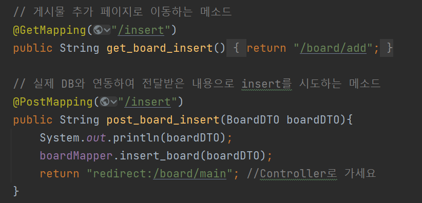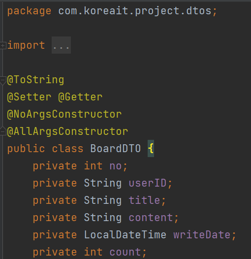 게시판 DTO를 만든 후