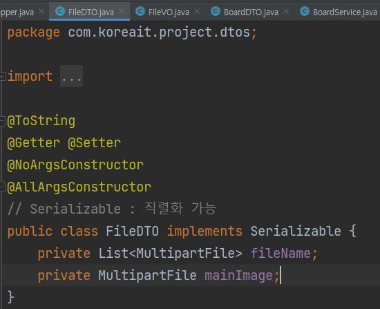 BoardDTO에 FileDTO 객체 추가