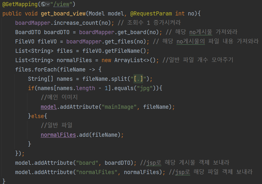이미 만들어 놓은 게시물 보기 GET을 다음과 같이 수정한다. 업로드한 파일이 보여져야 하기 때문.