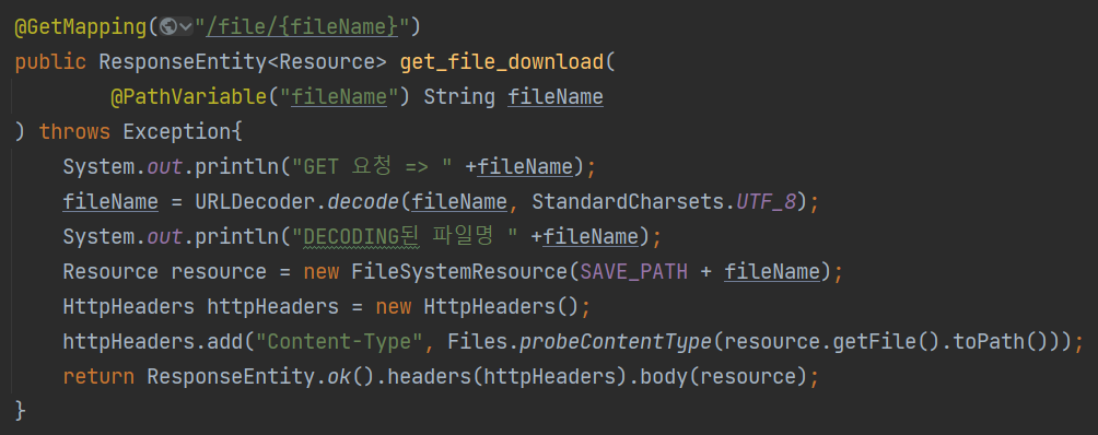 BoardController로 가서, 일단 파일 저장을 담당하는 일반 메소드를 만든다. SAVE_PATH라는 파일 경로 변수를 먼저 만든 후에, 다음과 같이 설정한다.